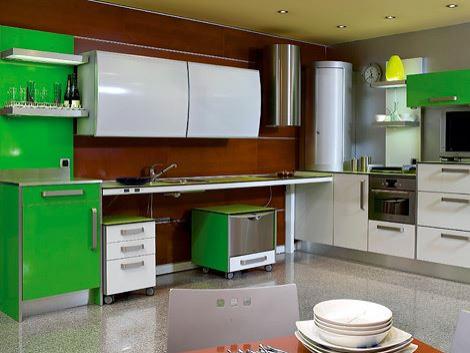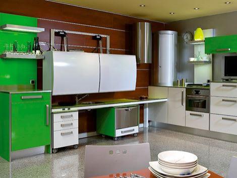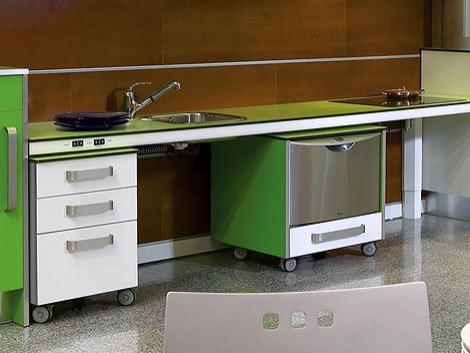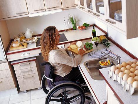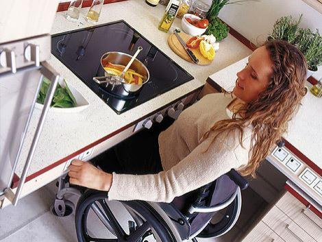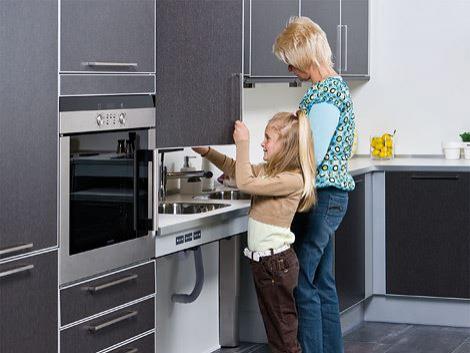 Dinge in Küchen, die das Leben für ältere und behinderte Menschen leichter machen (z. B. absenkbare Arbeitsflächen und Hängeschränke für Rollstuhlfahrer).